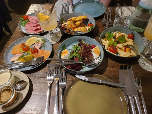 Read moreWar mit einer Gruppe dort, die Essen kamen nicht zeitnah für alle. Der Service ist grauenvoll, um ca. 20Uhr gab es als Vorspeise einen Gruß aus der Küche und im Anschluss ein wenig Brot. Die Reste davon standen bei Eintreffen des Hauptganges immer noch auf den Tischen. Das austeilen des Essens, hat für alle ca. 30 Personen, länger als 30min gedauert!!! So kam es natürlich, dass die ersten mit ihrem Essen bereits fertig waren, bevor alle überhaupt ihr Essen erhalten haben, für mich ein absolutes No Go, vorallem bei diesen Preisen die hier verlangt werden! Selbst 1 Stunde nachdem alle fertig waren, verblieben die Teller vom Hauptgericht und auch immer noch vom Gruß aus der Küche auf den Tischen. Auch war der Kellner nicht in der Lage, seine zwei Hände zu verwenden und mehr als nur einen Teller vom Tisch gleichzeitig abzuräumen. Selbst auf die Bitte direkt mehr mitzunehmen, wurde nur gesagt: "Gleich", doch dieses "gleich" waren dann auch ganze 24 Minuten und selbst da war der "Service" NICHT in der Lage, alles mitzunehmen. Es verblieben weiterhin Teile des Grußes aus der Küche und der Brotkorb auf dem Tisch. Es dauerte weitere 5 Minuten, bis endlich mal alles von den Tischen geräumt wurde, dennoch verblieben teilweise noch benutzes Besteck auf den Tischen. 2h Nachdem das erste Essen eintraf, waren dann auch der Brotkorb und die Reste des Grußes endlich vom Tisch verschwunden.