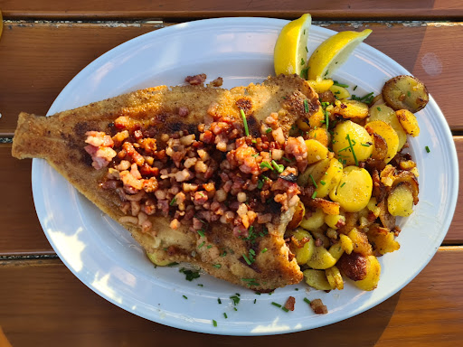Read moreFair sized restaurant, on 2 levels, with some outdoor seating. Excellent views of the Hochebrücke, and the Schwebefähre as it commutes back & forth across the canal. The food is quite good, with standard dishes on the menu - a variety of Fish dishes, Schnitzels, steak etc, as expected. Coffee & cake seems a popular draw for the elderly clientele. I had no complaints, and it's a useful stop for a coffee and a sit down, at the least. The carpark is free for customers, but seems to fill up quickly, even...