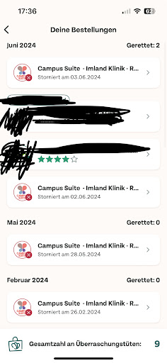 Hatte eine Überraschungstüte, welche mir der sehr freundliche Mitarbeiter überreicht hatte. Das Essen war sehr lecker und noch erstaunlich frisch. Generell wirkte alles top und sehr kundenfreundlich und auch wenn es teils sehr nett belegte Sachen sind finde ich, dass 5€ eventuell etwas zu teuer ist gerade für To Good To Go.