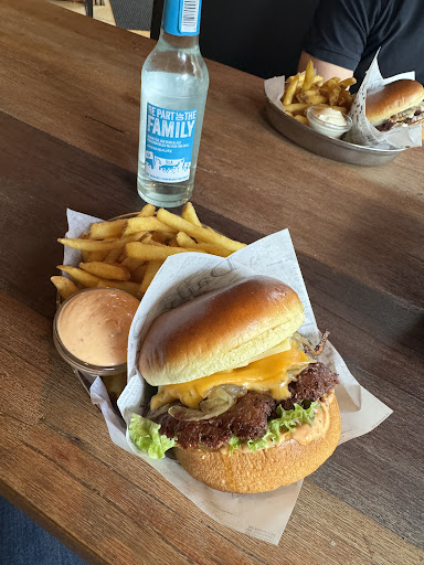 Read moreWir haben zum reservieren angerufen, die Verständigung dabei war etwas holprig, aber nicht weiter schlimm. In dem "Restaurant" angekommen wurden wir freundlich begrüßt und durften uns einen Tisch aussuchen. Zur Karte: finde ich ausbaufähig, das Hauptaugenmerk liegt auf Burgern. Leider wird an Getränken nur Wärme Getränke wie Kaffe, Kakao angeboten und an kalten Getränken nur Fritz Kola/Limo. Ist also auch ausbaufähig. Zum Bestellen: das lief ohne Probleme jedoch könnte gefragt werden, ob man gern Mayo oder Ketchup zu den Pommes hätte. Zum Essen: das Essen ist soweit lecker, könnte etwas mehr gewürzt werden, aber ok. Die Burgerbrötchen sind leider sehr fettig. Die selbgemachten Pommes sind wirklich lecker und knusprig. Allgemein: Man kann dort mal gut essen, würde es aber fast eher als Imbiss bezeichnen, als Restaurant. Sehr schade, dass die Servicekräfte die meiste Zeit hinterm Tresen am Handy sitzen, anstatt sich zu erkundigen, ob alles ok sei etc. Man ist selbst dafür verantwortlich sein Geschirr und seinen Müll wegzuräumen und bezahlt dann vorne am Tresen. Vorne am Tresen kann man sich Feuchttücher und Servietten holen. Schade ist, wenn man die Feuchttücher am Tisch benutzt und dann sein Geschirr und Müll wegbringt die Finger dann wieder...