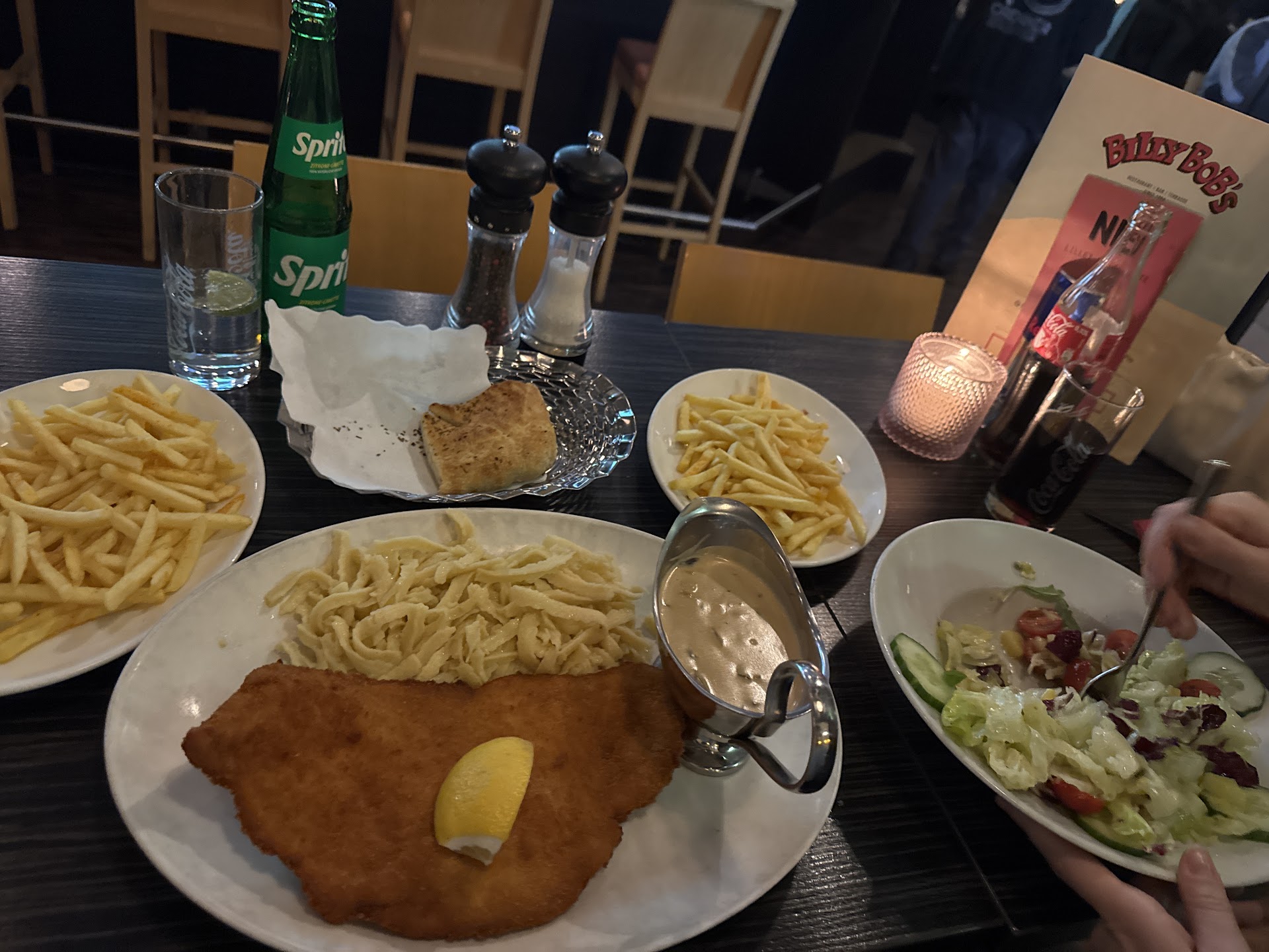 Read moreAlso.. ich hab mir jetzt extra alle Rezensionen von der Pizza durchgelesen und die Bilder betrachtet und ich bin wirklich kein Pingel ich ess immer alles und sogar sachen die mir nicht unbedingt schmecken aber die Pizza war ungelogen wirklich die schlechteste die ich jemals gegessen hab .. ein Freund von uns hat gestern gemeint wir sollten das Lokal besuchen weil er das Schnitzel dort liebt& viele die er kennt die Burger .. Burger war auch wirklich gut, nur die Pizza hat mich sowas von unglücklich gemacht... gefühlt halb roh lieblos draufgeklatschtes Zeug und geschmacklich wirklich schlechter als die billigste TK pizza ausm no Name Discounter .. hab selbst schon in diversen Lokals gearbeitet vielleicht ist auch einfach nur was schief gelaufen in der Küche weil schon ziemmlich viel los war aber ich bin immernoch traurig dass diese pizza so übel war 😅 ich hab die ganzen Stücke unter den Leuten verteilt die dabei waren und keiner hat auch nur ein stück ganz aufgegessen ... ansonsten super schneller und freundlicher service hat ausser dieser sache alles gepasst und schönes Ambiente .. eventuell sollte etwas mehr aufmerksamkeit in die Sauberkeit der Toiletten aber wenn Feiertag ist und viel los ist kann man das auch mal verkraften wenn bisschen papier auf dem...