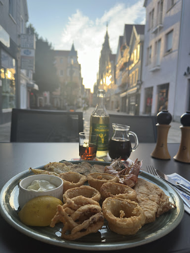 Zum Essen: Das Essen war einfach köstlich! Besonders hervorzuheben ist die Fischplatte, die ich bestellt habe. Sie war eine wahre Delikatesse, reich bestückt mit frischen Meeresfrüchten und Fischsorten. Die Platte enthielt saftige Scampis, zartes Doradefilet und perfekt gegrillte Kalamari. Jede Komponente war wunderbar gewürzt und auf den Punkt genau zubereitet. Als Beilagen gab es knusprige Zucchini und goldbraune Kartoffeln, die das Gericht harmonisch abrundeten.