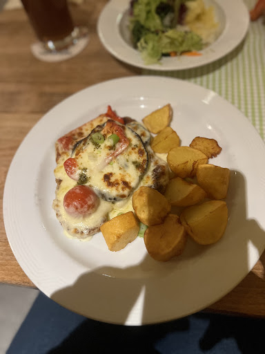 Essen geschmacklich zumindest für mich, sehr fad. Das Lombardie schmeckte nur nach Käse. Die Kartoffel ungewürzt. Gemüse halt wie Gemüse schmeckt. Rostbraten war gut, Soße war ok. Kässpätzle auch gut. Beilagensalat zu fade und das Dressing fast nicht vorhanden. Schade, aber vielleicht hatten wir einfach Pech. Sicherlich werden wir mal wieder kommen, die Qualität der Produkte war...