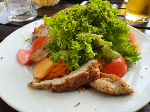 Wir waren gestern Abend spontan mal wieder im Biergarten im Karz. Nachdem sich zunächst das Servicepersonal nicht einig war, ein kellner sagte wir sollen kurz warten er schaut nach nem Tisch, kam dann eine Kellnerin und meinte wir sollen einfach durchlaufen und nach nem freien Tisch schauen. Wir wurden schnell bedient, das Essen kam auch schnell. Allerdings was den Beilagensalat betrifft, war ich sehr enttäuscht. Als wir im Mai da waren hatte ich schon der Kellnerin gesagt es wäre schön wenn eine kleine Menge Kartoffelsalat mit dabei wäre. Das ist heute überall Standard und bei einwm stolzen Preis von 5,60 für ein kleines Tellerchen Salat auch nicht zuviel verlangt. Sie meinte ich wäre nicht der erste der dies bemängelt, es wurde auch schon mehrfach an die Küche weitergeleitet, dort wurde das aber immer abgewiesen bzw. vehement abgelehnt. Zumindest war der restliche Salat damals frisch. Heute natürlich wieder kein Kartoffelsalat, und der restliche Salat, ootisch Blattsalat aus einer Tüte, Karotte und Kraut, augenscheinlich alles Eimerware, der grüne völlig lappig und weich. Also für diesen hohen Preis von 5,60 kann man mehr erwarten. Anbei ein Bild vom Mai und...