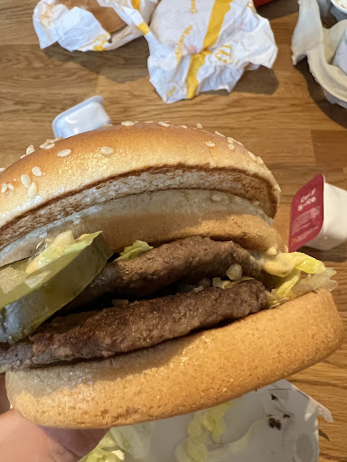 In unserem Happy Meal für unseren Sohn fehlten die Nuggets. Stattdessen war ein Cheeseburger drin. Nur leider isst er keine Burger. Somit musste er sich lediglich mit den Pommes begnügen. Der Big Mac war falsch sortiert. 2 Patty's direkt übereinender und der Deckel vom Bun direkt auf der "Trennscheibe". Ohne irgendwie Soße oder sowas dazwischen. Siehe Bild. Die Burger wurden so lieblos ins Papier geworfen, dass man sich jenes auch hätte sparen können. Eigentlich hätten die Burger auch so in die Mitnahmetüte gepackt werden können. Dann hätten wir wenigstens einen Bausatz gehabt um alles richtig zusammenzustellen von unserer Bestellung. Die Nuggets hätte ich dann ja aus den Chickenburger Patty's formen können. Dann wäre der kleine auch satt geworden. Jetzt kommts etwas Dicke.
