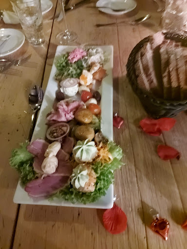 Read moreNot everything that glitters is gold. This restaurant was an absolute disgrace from start to finish! We've deducted stars for the following: rude welcoming. There was nobody at reception when we arrived. Upon walking in someone came out and said "I was serving other customers". No apology for the wait and arrogant attitude from the older lady there menu is totally unreadable. The fancy writing is cute but very hard to decipher. No consideration for pensioners or people who have visual impairments the mixed appetiser was simply put DISGUSTING. Picture attached. For 25 euros the salad plate was bland and tasteless. Only 1 mozzarella and tomato skewer, thin slices of roast beef, canned mushrooms and some unseasoned vegetables for a shared platter of two? Absolute shame! When we complained the waitress' answer was "I will give your feedback to the kitchen". No reduction was given on the bill afterwards. 0 customer service. my mum's fish tasted sour and the spaghetti was dry. This had probably been cooked in the afternoon and left to dry. Her plate was cold too no consideration was given to dressing the plates either. Just thrown together. Even we could have done better!