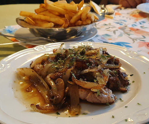 Alte, urige, dunkle und muffige Gaststätte. Der positive Eindruck der Fotos hat sich leider nicht bestätigt. In der Realität einfach nur dunkel und überhaupt nicht einladend. Direkt nach dem Betreten wollten wir das Haus wieder verlassen und das, obwohl wir auf das rustikale, urige eingestellt waren. Da die Möglichkeiten in diesem Ort doch sehr begrenzt sind blieb uns keine andere Wahl. Lange verweilten wir jedoch nicht.