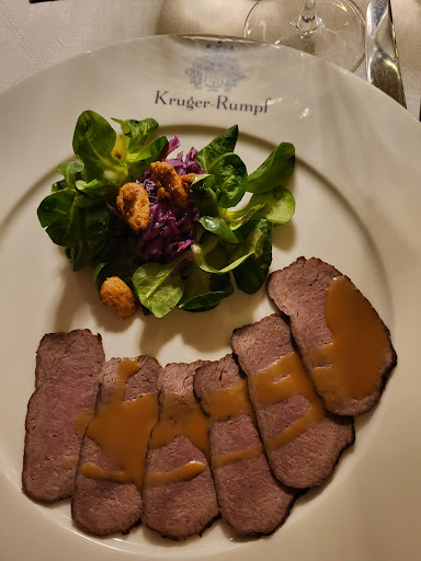Gute Weine und gutes Essen haben ihren Preis. Soviel steht fest. Allerdings betrachten wir als Einheimische vielleicht doch das Eine oder Andere etwas differenzierterer. Die Preise bei Kruger-Rumpf lassen sich durchaus mit anderen sehr guten Restaurants in der Umgebung vergleichen. Hierzu gehört u.a. das Bistro eines bekannten Fernseh-Sternekochs, aber auch einige andere Restaurants, die in im Hinblick auf ihre Qualität durchaus sehr gut sind. Hier stört dann doch ein wenig die Mini-Speisekarte mit einem Angebot das möglicherweise nicht jedermann's Sache ist, wobei, das muss gesagt werden, das die Speisen vorzüglich schmecken. Auch nicht gerade glücklich finde ich die Auswahl an Weinen welche wirklich sehr gut sind, jedoch zum Großteil aus Weinen der Rebsorte Riesling bestehen. Rot- und Roseweine gibt es jeweils nur 2 von jeder Sorte. Menschen die keinen Riesling mögen sind da etwas im Nachteil. Das liegt aber wohl daran, das Kruger-Rumpf bevorzugt Rieslingweine anbaut. Leider hat mir der Service am allerwenigsten gefallen. Patzige Antwort weil wir um 1 Person reduziert kamen. Der freundliche Hinweis darauf wurde mit der Antwort quittiert, das dadurch der Tisch ja nicht geändert würde. Dabei wollte man ja nur höflich Bescheid sagen. Auch am Tisch war der Service eher als muffig und gefühlt gestresst zu bezeichnen. Hier fühlte man sich nicht gut aufgehoben denn ein freundliches Lächeln oder ein paar nette Worte sollten auch bei Gästen welche keine "Stammgäste" sind erwarten können. Aus diesem Grund vergebe ich auch hier nur 3 Sterne. Wenn ich in einem guten und für die Region nicht ganz preiswerten Restaurant essen gehe, dann will ich mich nicht ärgern. Das vermiest mir...
