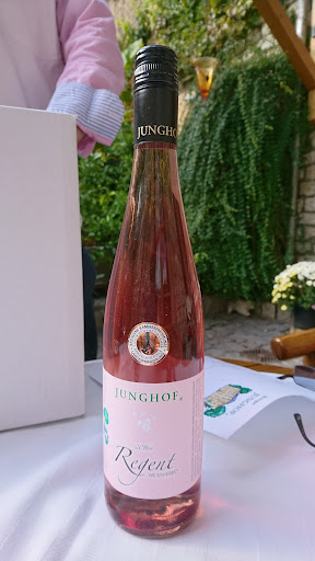 Wir haben im August 2023 im Anschluss an unsere kirchliche Trauung auf dem Junghof unsere absolute Traumhochzeit gefeiert. Wir sind nach wie vor unglaublich verliebt in die Location und sehr zufrieden mit unserer Wahl. Vom ersten Besichtigungstermin über die inklusive Hochzeitsweinprobe und weitere Detailgespräche bis hin zum Hochzeitstag selbst und der anschließenden Abwicklung hat alles reibungslos und wunderbar geklappt. Herr May-Jung ist sehr zuverlässig und gut erreichbar. Er war offen für unsere Vorstellungen, brachte aber gleichzeitig auf unaufdringliche, angenehme Weise seine Erfahrungen ein und gab uns viele hilfreiche Tipps. Die Location ist einfach ein Traum. Wir haben mit ca. 90 Personen gefeiert. Nach einem ausgedehnten Sektempfang im wunderschön angelegten, parkartigen Garten haben wir im rustikal-schicken Saal bei wunderbarem Ambiente gegessen und im Anschluss mit einem DJ bis in die Morgenstunden gefeiert. Für die Party wurden zu späterer Stunde einige Tische abgebaut, sodass die Tanzfläche entstanden ist, was reibungslos geklappt hat. Ab einer gewissen Uhrzeit musste die große Tür zur Terrasse abgeschlossen und der Ein- und Ausgang durch den kleinen Buffet-Raum benutzt werden, damit die laute Musik nicht zu sehr nach außen dringt. Dadurch, dass man durch die Scheiben jederzeit nach draußen bzw. drinnen schauen konnte, war das für uns aber kein Problem. Mit dem Service am Tag der Hochzeit waren wir insgesamt absolut zufrieden, alles ist wie besprochen gelaufen. Das Personal war freundlich, aufmerksam und humorvoll unterwegs und hat uns bis zuletzt jeden Wunsch von den Augen abgelesen. Das vorab gemeinsam entwickelte Menü war sehr lecker und auch mit der Wein- und Getränkeauswahl waren wir super zufrieden. Für die Nacht konnten wir als Brautpaar eine Wohnung direkt auf dem Hof mieten, was sehr praktisch war. Am Morgen bzw. Mittag mussten wir uns um nichts mehr kümmern, wurden mit einem letzten Espresso versorgt und mussten nur noch unsere Dekoartikel, die bereits ordentlich zusammengeräumt wurden, mitnehmen. Wir würden immer wieder auf dem Junghof feiern und können die Location uneingeschränkt von ganzem Herzen weiterempfehlen. Vielen Dank an Herrn May-Jung und das gesamte Personal für diesen traumhaften Hochzeitstag und all wie wunderbaren Erinnerungen auf...