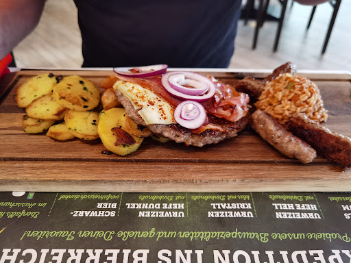 .... unter aller Sa.... - Hygienisch und vom Service! Wir waren am Sonntag, 03.05.2022, mit einer Gruppe von 15 Personen dort - und sicherlich ALLE das letzte Mal. Nachdem mehrere Personen unserer Gruppe Pils bzw. Radler geordert hatten, musste erst jemand losfahren und ein neues Fass beim Getränkelieferanten (sonntags) holen - und das bei hochsommerlichen Temperaturen, soll heißen: hat denn vorher keiner ein Pils bestellt? Definitv NEIN: denn, in dem ersten Pils des frisch angestochenen Fasses schwamm ein "PFROPFEN / Hefeklumpen oder sonstwas"!!! DAS passiert nur, wenn lange Zeit kein Bier durch die Leitung lief und eben diese auch längere Zeit nicht ordnungsgemäß gereinigt wurde (bin selbst aus der Gastronomie). Die weiteren Biere wurden dann serviert, natürlich ohne dass die Leitung gereinigt worden wäre. Ausserdem wurde der, sowieso schon die ganze Zeit über unfreundlich und genervte, Kellner beim Zahlen extrem ausfällig. Ich weiß nicht, als was er mich in seiner Landessprache bezeichntet hat, aber nicht nur ich würde aufs übelste beschimpft. Unsere älteste Teilnehmerin bezeichnete er extrem abfällig als "Alte". Zwar hat sich dann der Chef selbst entschuldigt, aber das reißt das nicht mehr raus! Ambiente war okay bis gut. Essen: wir hatten Nacho-Schnitzel bestellt, in Erwartung der "scharfen Hackfleischsoße". Die Soße war zwar selbst gemacht, aber entbehrte jeglichen Geschmacks (außer nach Tomaten). Die Pommes waren ziemlich "trocken/hart", wahrscheinlich einmal zu oft im Öl. Die Portionsgröße / Preisverhältnis kann gerade noch als okay bezeichnet werden. Nacho-Schnitzel mit ENTWEDER Salat ODER Pommes zu Euro 14,90 - das Frischgewicht des Schnitzels (aus dem Schweinerücken) schätze ich auf höchstens ca. 150 Gramm. Beilagensalat mit frischen Salaten Euro 3,50 - dann sind wir für einmal komplett bei Euro 18,40 und das ist dann schon nicht mehr so dolle. Getränke: Bier 0,5l Euro 4,50 - das ist ja okay, aber Schorle 04l, für Euro 4,50 ist schon grenzwertig. Von dem absolut unmöglichen Kellner einmal abgesehen, ist die Qualität insgesamt jetzt nicht so, dass ich noch eimal...