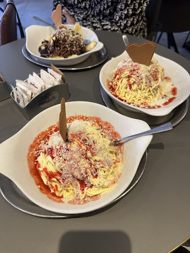 Eis und Getränke: • War alles andere als gut, das Eis schmeckt wie aus dem Supermarkt - nicht empfehlenswert! Erdbeeren scheinen auch tiefgefroren zu sein und nicht frisch, matschig und sehr klein.