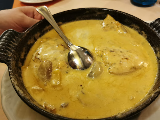 Kulinarisch blieb der Besuch hinter den Erwartungen zurĂŒck. Der gemischte Grillteller war akzeptabel, jedoch ohne besondere Raffinesse. EnttĂ€uschend waren die sogenannten âKnoblauchbratkartoffelnâ, die sich als einfache Fritteusenkartoffeln mit aufgestreutem Knoblauchpulver entpuppten â ein liebloser Versuch, ein klassisches Gericht umzusetzen. Auch der Fisch war geschmacklich in Ordnung, rechtfertigte jedoch nicht den gehobenen Preis. Insgesamt fiel die QualitĂ€t der Speisen gemessen an deren Anspruchslosigkeit deutlich ab, insbesondere angesichts des hohen Preisniveaus. Viele der Gerichte waren zudem stark fettig und belasteten spĂŒrbar das Wohlbefinden nach dem Essen. Auf ein Dessert wurde bewusst verzichtet, da die Auswahl wenig ansprechend war.