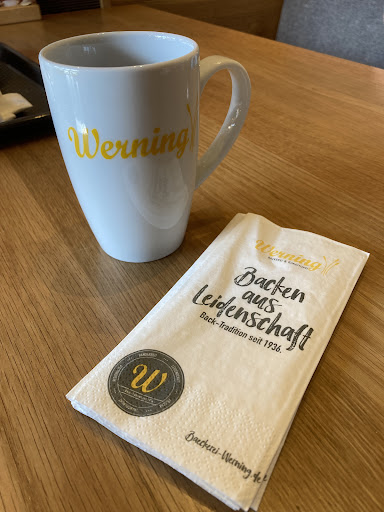 Read moreIch würde gerne etwas positives über diese Filiale berichten denn, Bäckerei Werning hat lecker Brötchen, Brote, Kuchen.... Aber dieses Personal geht garnicht. Vor paar Wochen war ich dort, und bestelle belegte Brötchen. Die worden vor meinen Augen ohne Handschuhe zubereitet. Geht garnicht. Als ich es ansprach, gab man mir als Antwort... das ich es wohl falsch gesehen hätte. Gestern waren wir wieder da. Was soll ich sagen... Habe meinen Kaffee nur zur Hälfte trinken können, da die Tasse/ Becher von innen aussah als ob man den nicht gespült hätte, oder besser gesagt, als ob man den Becher als abtropftasse unter den Kaffeevollautomaten benutzt hat, und da keiner anderer griffbereit war, hatt man halt den Becher genommen. Ist einfach nur eklig.! Für mich hat es sich jetzt endgültig erledigt. Dort werde ich, und meine Begleitung nicht mehr hingehen. Gibt's ja genug andere Orte in der Nähe wo man leckere Brötchen und...