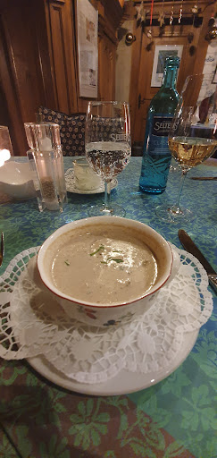 Read moreVorab: wir haben NICHT übernachtet, sondern nur gegessen.||Recht nette Begrüßung, gemütliche Atmosphäre. Der wirklich leckere Wein (den es seit dem 300-jährigen Jubliäum in 2012 als "Borchading-Wein" angeboten wird) war merkwürdigerweise in der Flasche teurer als das Glas. Bemerkung der Wirtin dazu: sie sei noch nicht dazu gekommen, das zu ändern....) Vorspeisen: Schnecken nach Elsässer Art waren ok, haben aber nicht begeistert. Sonst esse ich immer den letzten Sud noch mit Brot, darauf konnte ich hier leider verzichten. Die Show mit der Schneckenzange hätte man sich auch sparen können, denn es waren bereits ausgelöste Schnecken, die in Häuser drapiert wurden. Pfifferlingsrahmsuppe: mein Mann ließ sie nach 2-3 Löffeln stehen, da viel zu bitter. Der Wirtin tat dies leid und sie bat Ersatz an, allerdings kam die Hauptspeise dann ja auch direkt, somit wurde darauf verzichtet. Stattdessen bot man ein Schnäpschen an, Das kam dann nach dem Essen auch, allerdings nur für meinen Mann, was wir auch ein wenig merkwürdig und unüblich fanden. Die Antwort des Wirtes zur Bitterkeit der Suppe war lediglich, dass es sich eben um Wildpilze handele...... Hauptspeisen: meine Nudeln mit Gamberoni in Hummersause waren sehr lecker, die Sauce leider sehr ölig, was dem Geschmack aber nicht geschadet hat. Es mag nur nicht jeder gerne in dieser Konsistenz. Hüftsteak mit Pfeffersauce, Gemüse Beilage und Bratkartoffeln - alles sozusagen geschmacksneutral. Schon das Aussehen des Steaks war eine Zumutung, leicht in einer glatten Pfanne angebraten, noch recht blass und auch mehr durch als medium. Ein Stück Rindfleisch auf dem Teller... Das Gemüse nur matschig und ohne jeden Geschmack. Als bemerkt wurde, dass es meinem Mann wieder nicht schmeckte ( er ließ 3/4 liegen) kam der Wirt schon etwas ungehalten an den Tisch mit der Frage, ob nun mit dem Steak AUCH etwas nicht in Ordnung sei. Seine Reaktion zur Beschreibung des Gemüses war, dass diese nun mal "nature" seien und stellte etwas unwirsch einen Salzstreuer vor den Teller. Man könne ja noch pfeffern und nachsalzen. Mein Mann musste dann darum bitten, weiteressen zu können, weil er keine Lust auf eine Diskussion hatte. Nun zur erstaunlichen Rechnung. Die Speisen wurden alle bezahlt, wir hatten 2 Flaschen Wein dazu bestellt und mein Mann eine Flasche Wasser. Insgesamt ca. 100 €, Darunter war ein "Getränk" mit 1 € aufgeführt, das, wie man mir auf Anfrage bestätigte, das Leitungswasser war. Man habe schon mit mehreren Kollegen diskutiert, wie man die Bestellung von Leitungswasser abrechnen solle.... Ich muss nur sagen, Famile Borchading, das ist nicht nur völlig unangebracht, sondern in meinem Augen auch dumm. Was die Speisen unter dem Strich betrifft, so frage ich mich, wie dieses Restaurant je an irgendwelche Auszeichnungen gekommen ist. Kann man diese vielleicht kaufen? - Fazit: kein zufriedenstellendes Essen und unangebrachte Reaktionen auf Reklamationen. Da nützt auch ein nettes Ambiente nichts. Es wäre besser gewesen, auf mehrere andere Leute im Bekanntenkreis zu hören, die ähnliche Erfahrungen...