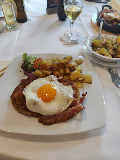 Read moreGutbürgerliche Küche in schöner Lage mit Blick ins Grüne! Die Speisekarte ist übersichtlich und leider sehr fleischlastig! Vegetarier sollten sich ein anderes Lokal suchen oder sich mit einem Salat vom Salatbuffet begnügen! Dies war bereits nach kurzer Zeit schon sehr abgefressen und sah nicht mehr appetitlich aus. Salatkreationen mit modernem Pfiff sucht man hier vergeblich! Die Spätzle zu den Rolladen waren gut, aber die Kartoffeln unterirdisch. Die Preise für diese eher stabile gutbürgerliche Küche ohne Fantasie und Kreativität dafür eher zu hoch angesetzt! Wer keine Überraschungen mag und essen liebt, das eher im letzten Jahrhundert anzusiedeln ist, fühlt sich hier wahrscheinlich sehr wohl! Bedienung und Ambiente waren ebenfalls nur mittelmäßig, daher gerade so noch...