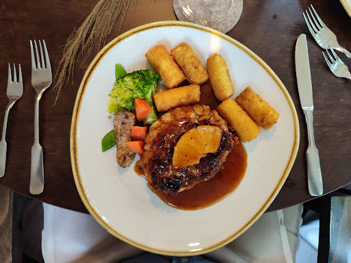 Read moreWir hatten das 4-Gänge Menü geschenkt bekommen und freuten uns auf einen schönen Abend mit leckerem Essen. Wir wurden freundlich empfangen und auch das Ambiente des Restaurants war sehr angenehm. Am Platz angekommen, wurden wir über das Menü aufgeklärt und über die mögliche Weinbegleitung zum Essen. Auf die Frage ob wir uns direkt für die Weine entscheiden sollten, wurde uns gesagt, das könne man auch später noch tun. Der Gruß aus der Küche waren 2 Baguettescheiben mit Frischkäse /Stracciatella Creme und ein Aperitif. Der erste Gang bestand aus einem Kürbiscremesuppe mit Schokolade. Der zweite Gang, Salat mit Kakao Vinaigrette und Panna Cotta vom Blumenkohl. Wobei die Kakaonote im Dressing nicht schmeckbar war. Auch die Portionsgröße, vier Salatblätter und zwei Minischeiben Panna Cotta, sind überdenkbar. Danach warteten wir über eine Stunde auf den Hauptgang. Gäste die definitiv später erschienen sind, wurden vorrangig bedient. Wir wurden weder nach Getränken (Weinbegleitung) gefragt, noch sonst irgendwie beachtet. So sassen wir auf einer Flasche Wasser und einem Glas Wein, welches wir zwischendurch bestellten. Dann kam unser Hauptgang, Saltimbocca, Erbsenpüree. glasierte Möhren. Ich kenne Saltimbocca als dünne Kalbsschnitzel mit Schinken und Salbei, kurz gebraten. Wir bekamen zwei Fleischstücke in Schinken gewickelt, leicht angebrannt und trocken. Das Erbsenürree war nichts sagend , aber die Portweinjus war sehr lecker. Danach kam relativ zügig das Dessert, eine weiße Schokoladenmousse, marinierte Früchte und Crunch. Nun, das Dessert war durchaus lecker, aber, die Mousse schmeckte mehr nach Sahne als nach weißer Schokolade, die Früchte / Waldbeermix waren aus der Tiefkühltruhe und der Crunch, waren zerdrückte Kekse. Resümee: Wir waren enttäuscht, wir fühlten uns trotz schönen Ambientes nicht gut aufgehoben. Die überaus lange Wartezeit und der schlechte Service, gaben uns das Gefühl, nur Gäste auf Gutscheinbasis zu sein. Das Problem an der Sache ist, ich wäre gerne noch mal wieder gekommen, wenn der Service besser gewesen wäre, das Essen Qualitativ besser, leider stimmte das ganze Packet nicht. Vielleicht sollte man darüber nachdenken, wenn ich Gutscheine anbiete, kann das eine Chance sein einen neuen Kunden zu gewinnen, und nicht, es ist nur ein Gutscheinkunde, der kann warten. Schade.....hätte mir...