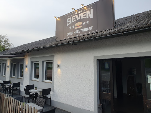 Mitten in Rieden, parkplatztechnisch etwas schwierig und an der Hauptstraße gelegen, ist also das "Seven Diner". Was das mit der Zahl sieben zu tun hat, erschließt sich mir ebenso wenig wie die Antwort auf die Frage, warum ich faktisch alleine in dem Restaurant bin. Auf Hochglanz poliert wirkt mit kleinen Kakteen-Abstrichen im Fenster der Laden eigentlich einladend, von außen hingegen ist er eher unscheinbar und mit Rancher betitelt, wirkt er sogar geschlossen und etwas heruntergekommen. Innen ist es etwas anderes. Mir fällt die Kälte im Restaurant auf, während auf zwei der drei Fernseh-Bildschirme Bogenschießen eines Niederländers und Retro-Hochsprung von deutschen Leichtathlethen auf Eurosport läuft. Ist das jetzt "made in USA"? Im Hintergrund krächzt ein scheinbar Londoner Radiosender und auf dem Klemmbrett kann man verschiedene Burgersorten ausprobieren. Coleslaw, Onion Rings und Pommes (Entschuldigung "Fries") gibt es hier. Dann noch irgendwas mit Huhn und die üblichen Getränke. Die Preise scheinen grenzwertig im Bereich von Okay. Leider passt neben der hängenden Lichtgirlande am Tresen auch der Mann vom Service nicht so richtig ins Ambiente. Man wünscht sich so einen alten, graubärtigen, zotteligen Typen im Harley Davidson-Outfit, der sein Bike im Eingang parkt, ein Urgestein mit amerikanischem Akzent, der die Army verlassen und in der Oberpfalz eine neue Heimat gefunden hat. Oder diese Art nette Bedienung im weißen Petticoat, bei der man beim Hinsehen nicht Nein sagen kann. Beides ist hier Fehlanzeige. Immerhin der Mann im Service spricht Deutsch, aber vielleicht ist auch gerade das das Problem.