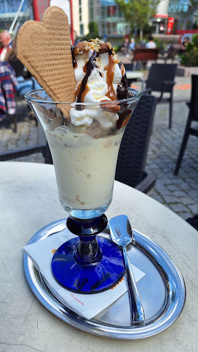 Read moreDas Eis hier schmeckt richtig lecker! Wir waren zu zweit und haben für 1 Eisbecher und 1 Apfelstrudel mit Puderzucker 10,40€ bezahlt. Der Preis ist wirklich unschlagbar - vor allem für die Qualität. Das Eiscafe liegt zentral. Es gibt Sitzmöglichen innen und außen. Natürlich kann man auch ein Eis zum Mitnehmen bestellen. Auch Torten und herzhafte Speisen werden angeboten. Die Mitarbeiter waren sehr freundlich und trotz der vielen Gäste mussten wir nicht lange warte. Die sauberen Toiletten in der oberen Etage sind über eine Treppe zu erreichen. Parkplätze sind in der Nebenstraße vorhanden. Gerne wieder....