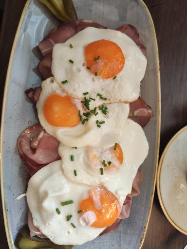 Was für uns leider zu einem negativen Beigeschmack geführt hat, ist die doch sehr volle Räumlichkeit. Wir hatten Monate (!) im Vorfeld reserviert, das Café versicherte sich mit einem Rückruf gegen Ende der Woche dann noch, ob unsere Reservierung weiterhin besteht. Umso ärgerlicher wurde es dann für uns, als wir zu zweit an einen kleinen Stehtisch im Eingangsbereich platziert wurden. Der kaum Platz für Teller und Getränke geboten hat. Durch permanenten Durchgangsverkehr (wir hatten die Eingangstür direkt im Nacken) wurde es dort doch ganz schön frisch. Meiner Meinung nach kann man diesen Tisch niemandem anbieten. Das Lokal war so überbucht, dass man 15-20 Minuten fürs Buffet anstehen musste. Die ungemütliche Atmosphäre schmälerte die Qualität unseres Aufenthalts...