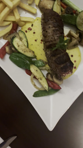 Read moreWaren die einzigen Gäste auf einem Donnerstag, waren schon erstaunt darüber. Das Lokal hat ein angenehmes Ambiente; die Toiletten waren blitzsauber. Die sehr nette Dame vom Service empfahl uns noch das Tagesgericht, in unserem Fall rosa gebratene Entenbrust mit Klößen und Rotkohl, für das wir uns dann auch entschieden haben. Vorweg bestellten wir uns noch den gemischten Antipastiteller. Laut Speisekarte bietet das Lokal deutsche Küche, mediterran angehaucht. So auch die Vorspeise, teilweise griechische und teilweise italienische Sachen. Zum Teil frisch angebraten, also noch warm. Ein perfekter Einstieg. Die Entenbrust war auf den Punkt gegart, perfekt. Zum Abschluss gönnten wir uns noch ein Eis mit heißen Kirschen, sicher für keinen Küchenchef eine Herausforderung, aber sehr lecker. Wir werden sicher...