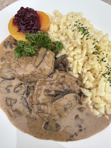 Mein Cordon Bleu war sehr lecker (Bild im Anhang) und zusammen mit den Beilagen auch in der Menge optimal. Die Schweineleber meiner Freundin überzeugte ebenfalls im Geschmack. Das Bier war dank des Steinkrugs trotz der warmen Außentemperaturen lange kühl. Für unseren Hund gab es selbstverständlich eine Schüssel Wasser. Als Nachspeise durften wir uns über hausgemachte Quarkfleckerl und dem dazu serviertem Apfelmus freuen. Und nicht nur wir konnten uns freuen. Auch die Freude der MitarbeiterInnen darüber, für ein Unternehmen mit diesen glücklichen Tieren zu arbeiten war in jeder Sekunde auf dem Hof zu spüren und zu sehen. Da fällt mir zum Beispiel ein Landwirt ein, der das frische Stroh in der Halle ablagert (was für die Kinder das Highlight des Abends war) und Zeit findet, freundlich zu grüßen.