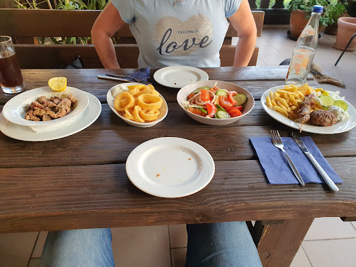 Read moreLeider bin ich sehr zwiegespalten! Einerseits gibt es sehr gutes Essen, das einen wirklich an eine originale griechische Taverne erinnert. Andererseits hat man das Gefühl das nicht alles ganz durchdacht ist: So musste uns (von wirklich sehr nettem Personal) die Karte erklärt werden. Auserdem waren Fehler auf der Karte (wie eine falsche Beschreibung eines Gerichts) und man braucht ein Schlüssel um aufs Klo zu gehen. Wenn man dann im Keller aufs Klo gehen will, muss man bei schwacher Beleuchtung das Schlüsselloch finden, um dann auf eine Toilette zu gehen auf der es nach Rauch stinkt. Aber auch das Ambiente und die Lage sprechen gegen das Restaurant. So sitzt man im Außenbereich unter einem Dach und hat einem soliden Ausblick, die Hälfte der Stühle und Tische sind aber aus plastik und alles wirkt etwas heruntergekommen. Außerdem sitzt man direkt unter einer dicken Stromtrasse, die man auch Summen hört.