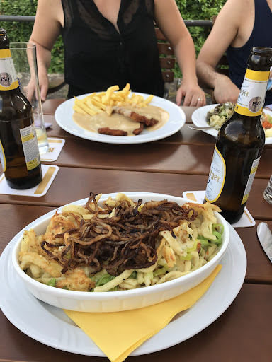 Die Speisekarte ist klassisch gehalten – viel Fleisch, regionale Gerichte und auch ein paar vegetarische Optionen. Ich hatte das Wildgulasch mit Knödeln, meine Begleitung ein Steak vom Rind – beides auf den Punkt gegart und sehr lecker. Die Portionen sind mehr als großzügig und die Preise absolut fair. Besonders hervorzuheben ist der Steak-Abend am Mittwoch – tolles Preis-Leistungs-Verhältnis!