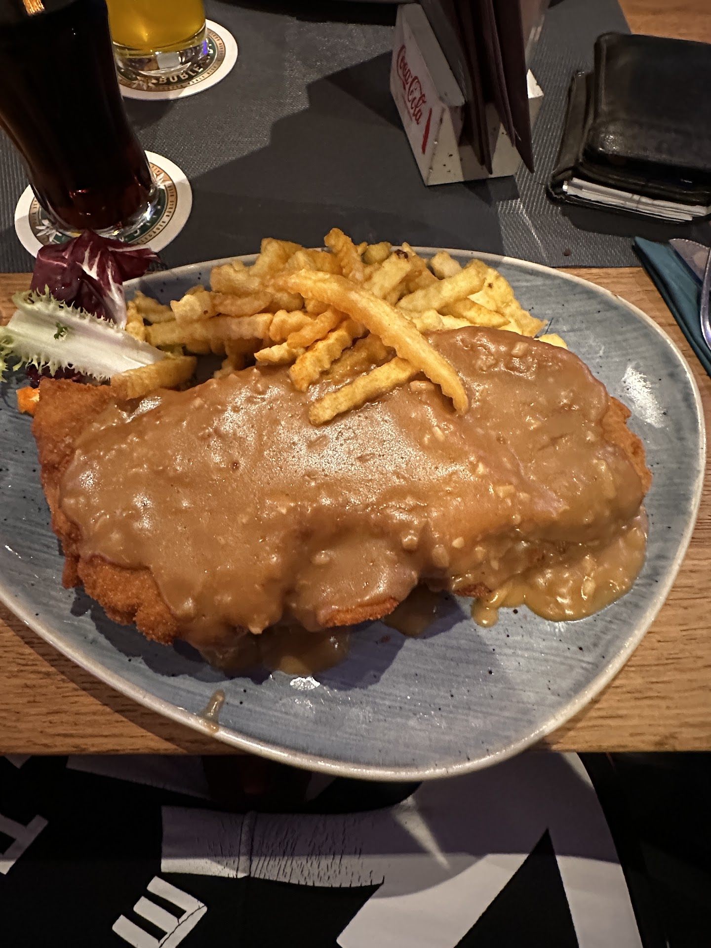Read moreMein Mann und ich waren heute zum ersten Mal dort und eventuell auch das letzte Mal. Aufmachung, Ambiente und Biergarten sind sehr schön und gelungen - doch leider ist dies auch das Einzige...zumindest hat es uns heute den Eindruck vermittelt. Wir mussten ewig auf unsere Getränke (2Lieter Bembel und Wasser) warten. Dann kam das Schnitzel von meinem Mann XXl und meines kam erst 7 Minuten Später (L) obwohl in der Zeit an anderen Tischen bereits 4-5 Schnitzel raus gingen. Dies ist meiner Meinung nach schon ein No Go und darf in einem guten Restaurant nicht passieren, egal wieviel los ist. Da zwei Personen als Paar, definitov zusammen essen möchten und nicht nacheinander! Dann hatte ich mein Schnitzel mit Rahmsoße, die wie alles geschmeckt hat aber nicht wie Rahmsoße sondern eher wie Keksteig. Mein Mann hatte sein Schnitzel mit Kroketten bestellt und bekam Pommes, schon wieder etwas falsches. Dann hatte er zusätzlich Rahmsoße mit Knoblauch bestellt, die absolut säuerlich geschmeckt hat. Als die Kellnerin kam und abgeräumt hat, haben wir ihr dies gesagt und man sah, dass ich von meinem Schnitzel fast nichts gegessen habe. Sie sagte nur warum haben sie dies nicht früher gesagt, dann hätten sie doch was anderes essen können - naja, vllt weil niemand kam um mal zu fragen ob alles okay ist oder es schmeckt. Im Gegenteil es war einfach keine Bedienung da die es auch nur annähernd in die Nähe unseres Tisches geschafft hat. Dann haben wir zur Verdauung zwei Mispelchen bestellt - leider haben die auf der Zunge gebitzelt, als ob diese kurz vorm gähren waren. Nun haben wir die Rechnung bestellt und es war alles schön boniert...nicht mal etwas als Entschädigung aufs Haus- selbst die extra Soße, die soooo sauer war wurde boniert. Zudem auch keine Entschuldigung von der Bedienung. Ich habe sie dann gefragt ob ernsthaft alles komplett berechnet wurde - die Antowrt war ein einfaches: ja ich habe alles boniert! Dann habe ich gesagt, dass ich die Soße auf keinen Fall zahle - diese wurde dann nach Wartezeit von der Rechnung genommen. Neben an am Tisch warteten Leute bereits 45 Minuten auf ihre Getränke, auch hier von der Bedienung nur ein Ja ich schau mal.... schrecklicher Service-schrecklcihes Essen. Herr Döbert hier sollten Sie dringend etwas ändern. Obwohl es schon eine abgespeckte Variante der Karte war...waren alle überfordert und das essen leider grauenhaft. Dafür sollte auf jeden Fall eine Entschuldicung folgen ! Es kann immer mal ein schlechter Tag sein und der Wurm drin sein aber dann muss wenigstens die Bedienung das ganze mit Charme und Freundlichkeit wieder retten und eventuell wenigstens mal ein Schnaps aufs Haus. Sorry, aber so etwas haben wir selten erlebt wir sind sehr viel Essen und lieben auch gutes Essen. Doch dies ging einfach gar nicht. Herr Döbert, gerne geben wir Ihnen und dem Döberts noch eine Chance, wenn sich diese...