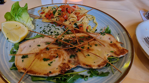 Leider habe ich keine Bilder gemacht. Das wäre eher Beweis für das schlechte Essen gewesen und weniger als nette Erinnerung. Außen gibt es Plätze direkt an der kaum befahrenen Straße gegenüber von Kirche und Schloss. Man sitzt auf kalten und unbequemen Plastikstühlen an einem viel zu hohen Tisch mit Platiktischdecke. Zum Essen kurz gesagt: ich hätte zuhause besser gekocht! Der Salat war lieblos angerichtet. Das Gemüse günstigste Ware. Gerade bei den Tomaten stelle ich mir echte italienische süße vor aber nicht die wässrigen holländischen. Der Schafskäse war sehr streng und ich bezweifle sogar dass es echter Schafskäse war. Es fehlte Balsamico und Olivenöl. Das Hauptgericht Pute oder Hähnchen mit Mozzarella überbacken war zäh, trocken und es fehlten komplett jegliche frische Kräuter. Als Beilage habe ich Gemüse gewählt, was dann einfach nur Tiefkühlware war, die ebenfalls nicht ein Stück gewürzt war. Als Abschluss einen sehr schlechten Cappuccino, der mit Sicherheit aus einem Automaten stammte und eines Italieners völlig unwürdig ist. Einmal und...