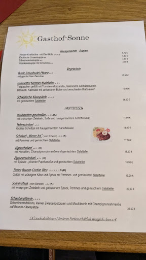 Read moreWir waren vor kurzem mit 14 Personen in der Sonne, erst war alles gut, bis einige Zeit nach der Bestellung die Bedienung kam und unserem Freund mitteilte, dass sie ihm keine klare Brühe servieren kann, weil diese aus sei, und das am Samstag Abend um 19 Uhr. Ich erklärte ihr, dass unser Freund nur dünne Flüssigkeit schlucken kann. Es kam ein sorry, aber die Brühe ist aus. Unser Freund ist schwer krank, er wird über Sonde ernährt und wollte nur eine Brühe essen, damit er auch etwas zu essen hat und nicht immer trocken schlucken muss wenn wir essen. Er fühlt sich so einfach besser und das können wir auch gut verstehen. Diese Reaktion aus der Küche hat mich sehr wütend gemacht,. Aus sicherer Quelle wurde mir ein paar Tage später gesagt, dass immer Brühe in der Gefriertruhe sei, es stehen ja auch Maultaschen in der Brühe und Flädlesuppe auf der Speisekarte. Ich denke Herbert und Susi sollten sich mal Gedanken machen ob es Gründe gibt, wenn ein Gast etwas „Besonderes“ bestellt. Man kann mit Kleinigkeiten jemanden etwas Gutes tun, auch wenn man damit nichts oder nur wenig verdienen kann. Wir werden jedenfalls nie wieder in die...