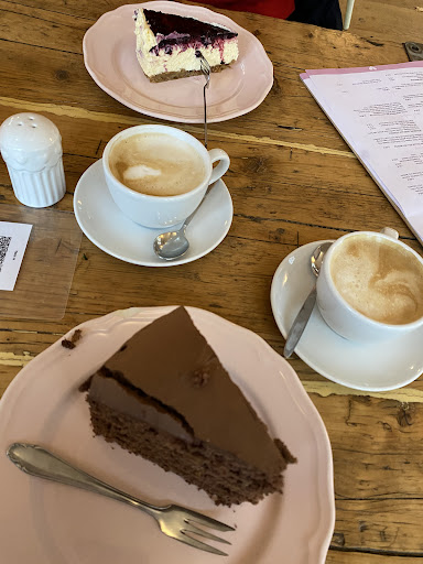 Read moreWir waren heute das 1. Mal im Café. Das Ambiente ist echt toll. Es ist super schön eingerichtet. Die Details sind toll und alles in einem sehr stimmig. Die Kuchenauswahl ist wirklich vielseitig und die Torten/Kuchen schmecken wirklich sehr sehr lecker! Warum aber dann nur 3 Sterne? Mir fällt es schwer aber Service spielt hier eine große Rolle und das war leider nicht so gut. Die Bedienung war wirklich freundlich aber man fühlt sich verloren und sich selbst überlassen. Es geht schon damit los das es keinen Hinweis darauf gibt, ob freie Platzwahl ist oder nicht. Aktuell mit Corona irritierend. Dies muss man selbst erfragen. Die Bedienung erfolgt am Tisch. Tja wenn man wüsste dass die Speisekarte NUR online zur Verfügung steht. In einem Wald mit Edge als Internetgeschwindigkeit ist man verloren. Gut, dass es hauseigenes WLAN gibt. Schlecht wenn nirgendwo ein Hinweis samt Passwort gibt sondern die Bedienung das ganze buchstabieren muss. Bei der Kuchenauswahl wird online darauf hingewiesen sich drinnen umzuschauen. Drinnen sind die Kuchen nicht beschildert. Was wieder auf rumfragen hinausläuft. Ich bin kommunikativ finde es aber echt nervig alles erfragen zu müssen und komme mir auch ehrlich gesagt dumm vor wenn ich fragen muss welche Torten es gibt, was es für Getränke gibt, wo man sitzen darf, wie das WLAN Passwort ist und wo man denn überhaupt bezahlt. Ein schriftlicher Hinweis am Eingang oder mündlich durch die Bedienung wäre super und nicht zu beanstanden aber alles selbst der Bedienung aus der Nase zu ziehen ist störend! Im Endeffekt 4x im Lokal hin und her zugehen um sich die nötigen Infos zu holen muss nicht sein. Als Verbesserungsvorschlag könnte man vllt an den Tischen auf die Online Speisekarte und WiFi hinweisen. Am Eingang dann auf die...