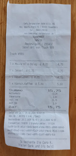 Schließlich mussten wir für eine belegte Semmel, ein Stück Kuchen und einen Kaffee ganze 16 € zahlen. Die Preise aus der Theke haben sich also fast verdoppelt!