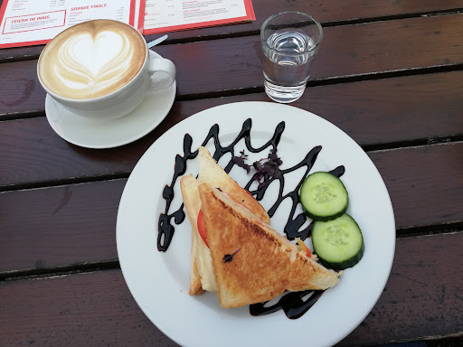 Read moreAuf den ersten Blick ein Café / Bistro mit Charme. Das Gebäude wird wohl früher mal zu einer Fabrik gehört haben. Draußen befinden sich viele Tische und Stühle, die untereinander durch Oleanderbäume abgetrennt sind. Auf den zweiten Blick wird man von den vielen Bedienungen nicht beachtet. Eine ist uns hierbei besonders in Auge gesprungen (kurze, dunkelnblonde Haare, Mitte/Ende 40). Sie ging wortlos an einem vorbei, beachtet neue und ankommende Gäste nicht, kein Lächeln und den gehenden Gästen wird kein Danke mitgegeben. Wir hatten ein Toast, der optisch sehr schön angerichtet wurde, allerdings hätte ich mich über einen Hinweis in der Speisekarte sehr gefreut, dass es mit jeder Menge Crema Balsamico angerichtet wird.