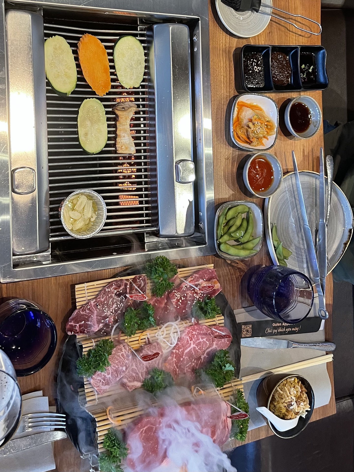 Leider, leider kann man hier nur 5 Sterne vergeben. Wenn ich könnte würde ich mehr Sterne vergeben. Das Cochin ist ein sehr schön eingerichtetes Lokal mit einer wirklich super guten Speisekarte. Man kann Sushi essen, „normales“ vietnamesisches Essen wie Nudel- Bowles & Reisspezialitäten & BBQ. Wir haben zum 1. mal das BBQ probiert- es war wirklich köstlich. Die Preise finde ich mehr als fair und gebe gerne mehr Geld aus, wenn die Qualität hochwertig ist und beim Fleisch auch auf Tierwohl geachtet wird (zumindest ist dies auf der Karte angegeben und dann schmeckt es gleich doppelt so gut :) ). Einfach super, dass dieses Lokal auch darauf achtet, denn ich finde gerade in den aktuellen Zeiten ist dies sehr wichtig. Beim BBQ bekommt man eine Suppe als Vorspeise und ein paar Dumplings, die ebenfalls sehr lecker waren. Im Anschluss werden dann Saucen, Beilagen & das Fleisch für das BBQ gebracht. Dabei waren Edamame, eierreis, Gemüse & diverse Saucen, sowie Kimchi. Als Fleisch bestellten wir einen Mix aus Rindfleisch, Hähnchen & einem Wagyu- Upgrade. Gemüse & Fleisch kann man dann nach persönlichen Geschmack auf dem Grill in der Mitte des Tisches rausbraten & in Ruhe essen. Die Saucen waren alle hausgemacht. Wir haben am Nachbartisch auch die Fisch-Platte mit Garnelen gesehen- auch diese sah sehr lecker aus und wir probieren sie bestimmt mal aus. Als Dessert hatten wir Kokos- Kugeln (sehr sehr zu empfehlen) & gebackene Banane - alles frisch. Insgesamt eines meiner neuen Lieblings- Lokale - sehr sehr schön das so ein Restaurant eröffnet hat in Rosenheim, das hat wirklich noch gefehlt. Es dauert sicher nicht allzu lange bis wir mal wieder kommen & dann das Sushi oder die Empfehlung des Chefs , oder oder ;)...