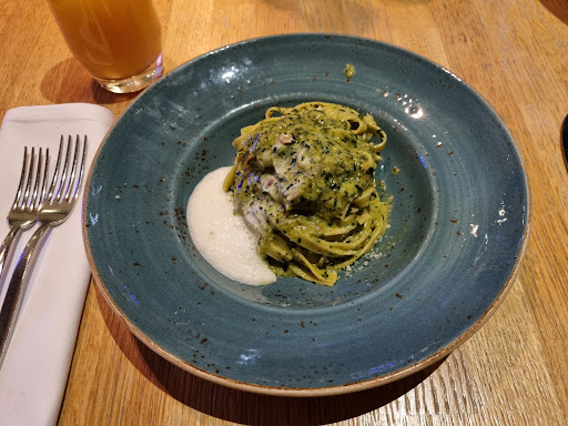 Read moreNettes offenes Ambiente und guter Service. Das Essen war enttäuschend. Zum Büffelmozarella mit Rucola und Tomaten gab es fast kein Ölivenöl oder Balsamico und die Cherrytomaten waren unreif. Fazit: Geschmacklos Rumpsteak mit Rosmarinkartoffeln und Parmesan: Es gab nur 3 halbe Kartoffeln, ansonsten wieder den gleichen Rucola und Tomaten von der Vorspeise. Steak wurde medium rare bestellt, bekommen habe ich es medium und an den Seiten war es well done. Es war eine Art Steakstreifen mit Salat. 3-Schokomouse-Pyramide: Nicht selbstgemacht und hauptsächlich süß, es fehlte die Leichtigkeit die ein gutes Mousse hat. Etwas Orange oder Ähnliches hätte sicher geholfen.
