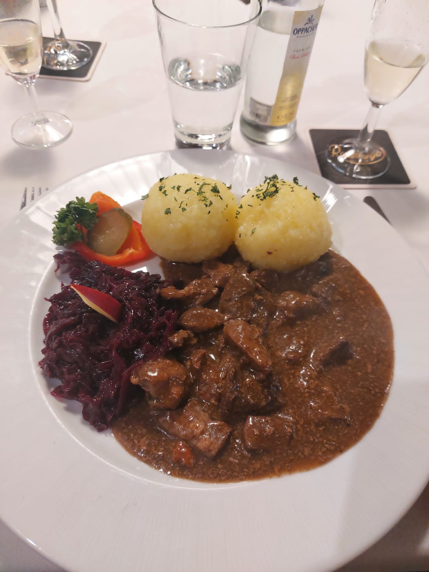 This is an absolutely fantastic place to eat and fully deserving of 5* A variety of traditional German main courses - Roulade, Gulasch, Sauerbraten with something for everyone. All staff were very friendly and helpful. We booked in advance and had a lovely table with a gorgeous view over the valley. Good to see local people having a meal out and a beer here too. Can thoroughly recommend heading up to Garnbach for...