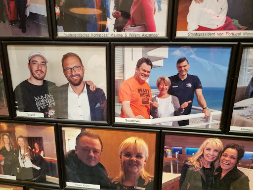 Read moreWir hatten für den 04.09. einen Tisch für 10 Personen reserviert. An diesem Tag habe ich meinen 50. Geburtstag gefeiert und die Kaffeetafel sollte festlich eingedeckt sein. Der Empfang war sehr neutral, gleich mit der Frage vorn....wem darf ich gratulieren...mir...na dann herzlichen Glückwunsch. Ok, soweit so gut. Die Tafel bestand aus einem runden und einem eckigen Tisch mit weißer Tischdecke der üblichen Blumenvase und zwei mickrigen Kerzen. Keine Servieten, o.ä. Unter festlich eingedeckt stell ich mir was anderes vor. Die Tische waren auf der Mole Seite ganz hinten. Der Ausblick in die Ferne war toll, jedoch guckt man auch auf den Balkon, dort wohnen und nisten Tauben, einfach ekelhaft, bei Kaffe und Kuchen die ganze Zeit auf Taubensch...zu gucken. 20 min. gewartet bis wir überhaupt bedient werden. Dann kommt der Kaffee für alle, nach einer gewißen Zeit der Kuchen und wenn alle schon fertig sind kriegen auch die letzten endlich ihre Eisbecher, so das ein gemeinsames Kaffee trinken gar nicht möglich ist. Fazit des Nachmittages: schade um das Geld und für die nächste Kaffeerunde such ich mir was anderes. Das Personal ist recht nett, jedoch hat es vom Servieren keine Ahnung. Teller und Tassen werden kreuz und quer rüber gegeben usw. Schade,...