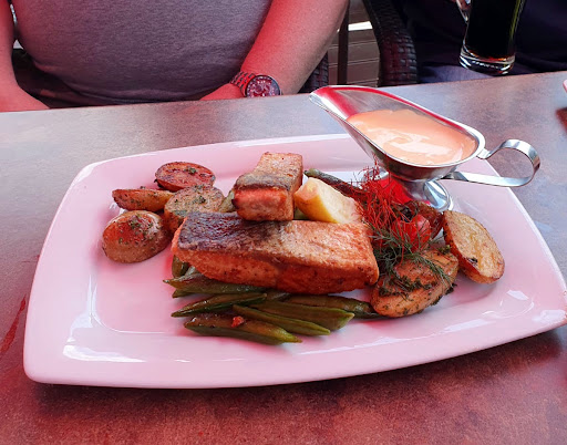 Super friendly service from the waiters. We asked to be seated outside, and they immediately obliged and prepared a table for us. The Hugo drink is really nice with mint and lemon. The waldbeeren spritz wasn't so good. We ordered fisch teller which was quite awesome. The fish fillets tasted delicious and the sides were equally tempting. All the components of the dish complimented each other perfectly. As a starter, we ordered pommes..was quite decent as well. This restaurant doesn't durn a hole in your pocket and you can expect to spend around 25€ with a drink, small starter and a...