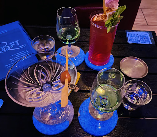 Cute little Bar. On the positive side. Drinks which can't be found in every bar. Thanks for that. Living abroad for years it gives you a different perspective. Even tho, I had been there before and the drink didn't meet my expectations the first time, the team did everything to change that fact. And they did. Some minor pointers I would like to add. Double strain drinks which are served without ice. (Just my opinion as the little ice splits are actually watering the drink further down beyond the quality you want to serve)