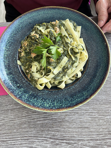 My dad had the smoked salmon pasta, which he enjoyed, though his portion seemed a bit smaller than ours — he ended up helping my mom finish hers (she’s a light eater).
