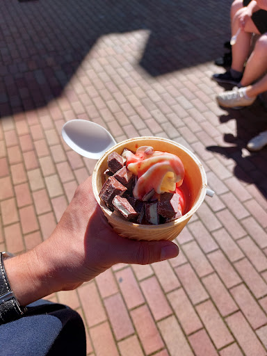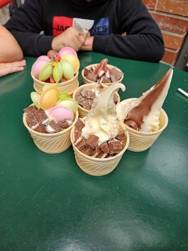 Read moreWir waren mit unserer Tochter dort und mussten wegen des Andrangs sehr lange in einem sehr warmen und stickigen Geschäft anstehen. Die Schlange versperrt draußen vor der Tür den Weg für andere. Die Außenbestuhlung war ungemütlich, da sich permanent Leute um einen reihten, die ebenfalls anstanden, um an das groß angepriesene Eis zu kommen. Als wir endlich dran waren, bestellte wir drei Schoko-Vanille Klassiker mit Topping, die geschmacklich sehr gut, aber nichts Besonderes sind. Noch auf dem Thresen liefen die Soßen am Eis runter und an der Muschelwaffel vorbei. Thresen und Finger hatten noch vor uns, Kontakt mit der süßen Suppe. Man erwähnte dann nebenbei, dass diese Art von Waffeln für Topping nicht ausreichend seien, was mich wunderte, weil es ja auch Becher gab. Wenn man doch als Verkäuferin darum weiß, wie man solche klebrigen Angelegenheiten vermeiden kann, warum, macht man solche Empfehlung kurz bevor man zum zahlen aufgefordert wird? Kein schönes...