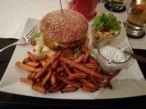 Mein Kollege hat ein überbackenes Schnitzel gegessen. Die Panade hat suffliert was ein eindeutiger Hinweis darauf ist, dass es sich nicht um Tiefkühlware handelt. Ich hatte einen tollen Burger von der Herbstkarte. Er wurde mit einem Kürbischutney und Brie zubereitet. Sehr lecker. Dazu gab es Süßkartoffelpommes und offensichtlich hausgemachte Sour Creme. Perfekt wäre er gewesen, wenn das Brötchen nicht "Standard" gewesen wäre - aber der Burger hat 13,50 Euro gekostet, da stimmt das Preis-/ Leistungsverhältnis. Das Schnitzel hat 12,50 Euro gekostet, auch ein absolut gerechtfertigter Preis. Ein kleines Bier kostet 2,40 Euro, ein großes 3,50 Euro. Alles in allem sehr günstig - was vielleicht auch am allgemeinen Preisumfeld in Rostock liegt.