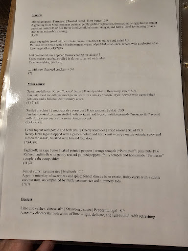 Gerne und guten Gewissens gebe ich hier die volle Punktzahl, obwohl ich einen schwerwiegenden Kritikpunkt bzw. eine entsprechende Anregung deponieren muss; siehe unten, erst mal das Positive: Mein Essen (Quiche «vergessenes Gemüse» und der Beilagensalat) schmeckte hervorragend und war sehr schön angerichtet. Der Service blieb von Anfang an aufmerksam und die Wartezeit nach der Bestellung war voll in Ordnung; es war ja auch alles frisch angerichtet. Was ich sehr vermisse und nicht verstehe, dass in so einem engagierten Restaurant dies fast komplett fehlt: Gerichte mit Hülsenfrüchten, abgesehen von einem Hauptgang mit (dem von mir sehr geschätzen) Tempeh; doch das Gericht mit Tempeh wählte ich nicht, da es zusammen mit Fusilli (spiralförmige Teigwaren) angerichtet wurde, was ich persönlich bei einer Gastronomie auf diesem Niveau nicht goutieren kann (wobei natürlich viele Menschen auf Teigwaren «abfahren» und dies somit durchaus in Ordnung ist). Auch vermisst habe ich Pilze, was aber nicht so gravierend ist, wie die fehlenden Hülsenfrüchte (Bohnen, Linsen, Erbsen). Falls jetzt als Entschuldigung ins Feld geführt würde, Hülsenfrüchte würden Winde treiben und seien darum nicht geschätzt: Wenn sich die Darmflora an Hülsenfrüchte gewöhnt hat, bleiben die Winde aus. Und sie sind für Veganer essenziell als Protein-Lieferant. Apropos Winde: Die erzeugte bei mir der Seitan, der in meinem Gericht vorhanden war (mich nahm wunder, wie die Marinade schmeckt. Normalerweise esse ich kein Seitan, da jeglicher Fleischersatz völlig unnötig ist und der Aufwand/Abfall bei der Erstellung gigantisch ist). Langer Rede Sinn: Statt Seitan verwendet doch einfach Hülsenfrüchte, die es in über 1000 Variationen...