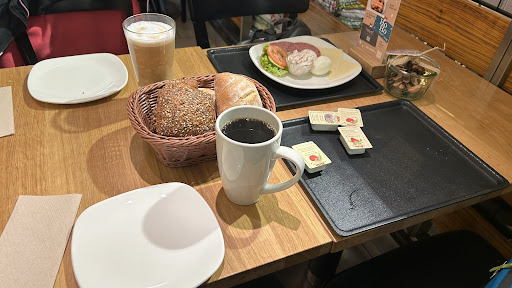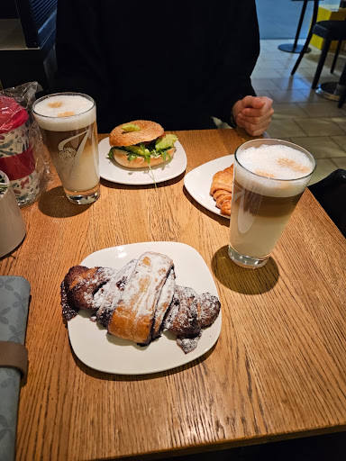 Wir waren heute (01.04.23.) 10.45 Uhr hier und haben gefrühstückt. Der Veggie Max ist zwar nicht gerade günstig, aber schmeckte mir unwahrscheinlich gut. Wie immer haben wir auch nach der goldenen Milch gefragt, die aktuell leider häufiger nicht zur Verfügung steht. Das war auch heute der Fall. Der Bäckereifachverkäufer reagierte jedoch prompt und bot meiner Freundin eine Chai Latte an. Auch fragte er bei den Croissants und belegten Brötchen, ob er sie warm machen soll. Wir fragten ihn, ob die Mitarbeitenden auf Freundlichkeit geschult werden, da auch die Kollegen in anderen Filialen wirklich freundlich sind. Er meinte, er mache seinen Job einfach gern und das merkte man auch; aufmerksam, freundlich, zuvorkommend. Sehr...