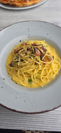 Read moreWir haben vorab bei Google gecheckt was es so in Warnemünde gibt und wie die Bewertungen der Gastronomien sind. Dementsprechend hatten wir hohe Erwartungen, die an unserem Besuch leider nicht erfüllt werden konnten. Wir waren gegen 18.30 Uhr da und saßen draußen. Die Deko der Tische draußen fanden wir etwa spärlich was schade ist. Drinnen war es gemütlicher eingerichtet. Der Service war an sich freundlich, jedoch nicht wirklich aufmerksam oder präsent. Das Essen - eine Pizza und Spaghetti Carbonara - kamen sehr schnell. Die Pizza war ok - hätte etwas mehr Belag und der Teig knuspriger sein können. Bei der Carbonara wäre etwas mehr Speck schön gewesen und für 16.90 Euro fanden wir die Portion etwas klein. Verwundert hat uns ein Aufsteller, auf dem Stand es gibt nur Pizza und Salat. Auf Nachfrage hieß es dann, es gäbe kein Fisch und Fleisch, wir bräuchten das Schild nicht beachten.