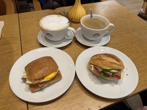 Read morePersonal unfreundlich: wir waren dabei mit einem Kinderwagen reinzugehen, wurde schnell darauf hingewiesen die Tür zu zu machen (kriegt man die Zeit mit dem Kinderwagen durchzukommen?!?). Frühstücksangebot: erst auf Nachfrage wurde wir auf dem Angebot auf dem Plakat draußen hingewiesen (im Innenbereich war keinen Schild vorhanden). Nachdem wir uns entschieden für das Frühstück mit Lachs, sagte uns die Verkäuferin, der Lachs sei ausverkauft (wieso hat sie uns nicht vorher gesagt?!) Meine Freundinnen hatten sich dann schnell für Rühreier entschieden, ich braucht noch ein paar Minuten. Als ich dann bestellte, war sie wieder genervt, dass sie noch einen Gericht mit Rühreier zubereiten musste (dabei hatte sie schon die Augen gerollt). Traurig! Mein Latte Macchiato war übergelaufen und mein Glas voller Schaum… nicht mal das Glas ein bisschen sauber gemacht. Als ich das Essen bekam, musst ich feststellen, dass der bacon komplett schwarz war.