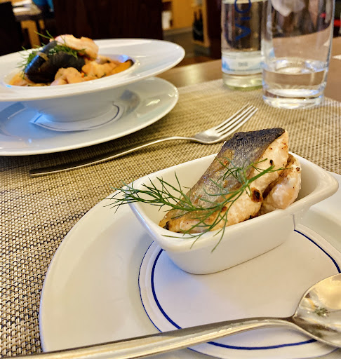 The food. I ordered a tapas and a soup and wine. The gebratenes saiblingsfilet tapas was super. The Fischsuppe was also lavishly full of mussels and fish and a prawn on top. But sadly the middle shell had broken into so many small pieces that when I scooped form the bottom I kept getting the brittle shell in my mounts. After a few spoons it was unpleasant enough that I was done with the soup.