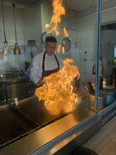 Die Einrichtung und wie es auch schon in den Bewertungen zu lesen war, ist das ganze Paket inkl. Beleuchtung sehr angenehm. Auch die offene Küche als kleines Show Element, wo man auch direkt am Tisch den Koch mit Daumen Hoch ein Feedback geben kann sehr gelungen.