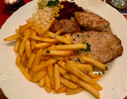 Eine 0,4l Saftschorle kostet knapp 5€, der Apfelstrudel, den es zum Nachtisch gab auch. Dieser war leider etwas klein, dafür gab es viel Sahne und Soße. Eine größere Portion wäre bei diesem Preis wünschenswert.