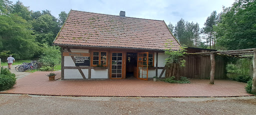 Kleine Speisekarte mit gut ausgesuchten Gerichten für Gemüse- und Fleischliebhaber. Tolle Kuchen- und Getränkeauswahl. Keine Mainstream Produkte. Kein frittiertes Gelumpe. Alles selbst gemacht wie mir scheint. Bier vom Fass, nach einer anstrengenden Radtour in einer malerischen Waldumgebung - was will man mehr?!